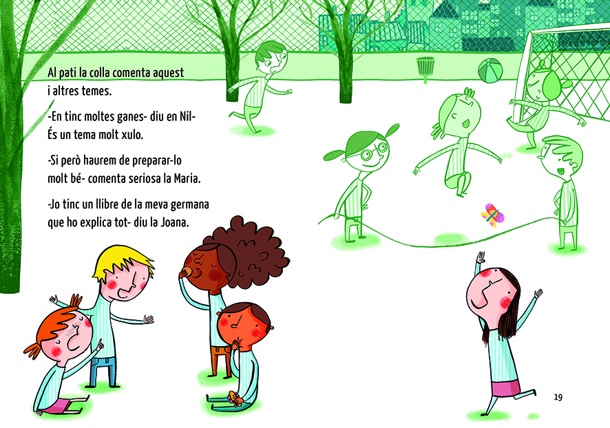 La Paula està Alegre. Està tan contenta que tothora somriu, fa les coses que lli diuen a la primera, anima els companys, té ganes de jugar, està riallera i … encomana als altres la seva alegria.